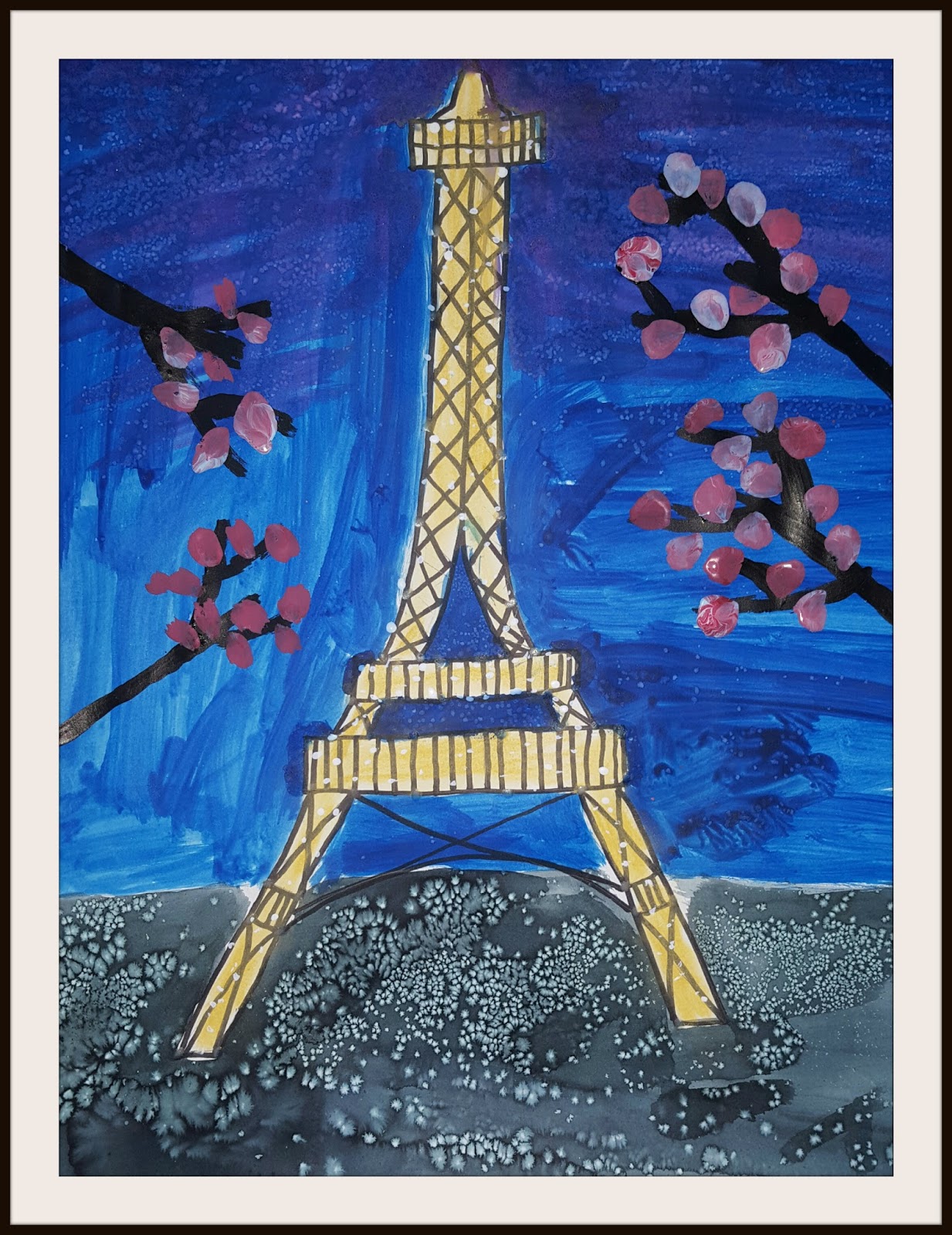 When the closest thing to traveling you do is watching Anthony Bourdain on The Travel Channel, what do you do to satisfy your wanderlust? Well, if you're me, you settle on a travel poster art themed class. It was very difficult to settle on only four destinations for my month-long class. My 2nd-4th graders used a variety of wet and dry media to create their compositions. They had a lot of fun exploring a new land each week. So even though it's been years since I've had my passport stamped, this was a nice little consolation prize.